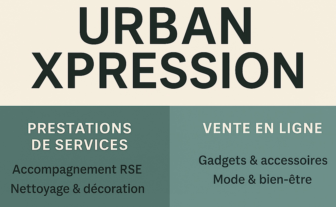 Urban Xpression est une entreprise polyvalente proposant des services RSE (accompagnement en stratégie durable), du nettoyage professionnel, du ménage écoresponsable, ainsi que de la décoration et optimisation d’espace. Côté e-commerce, nous proposons une sélection de gadgets tech, accessoires téléphonie, produits informatiques, bien-être et mode. Fiabilité, réactivité et qualité sont nos maîtres-mots
